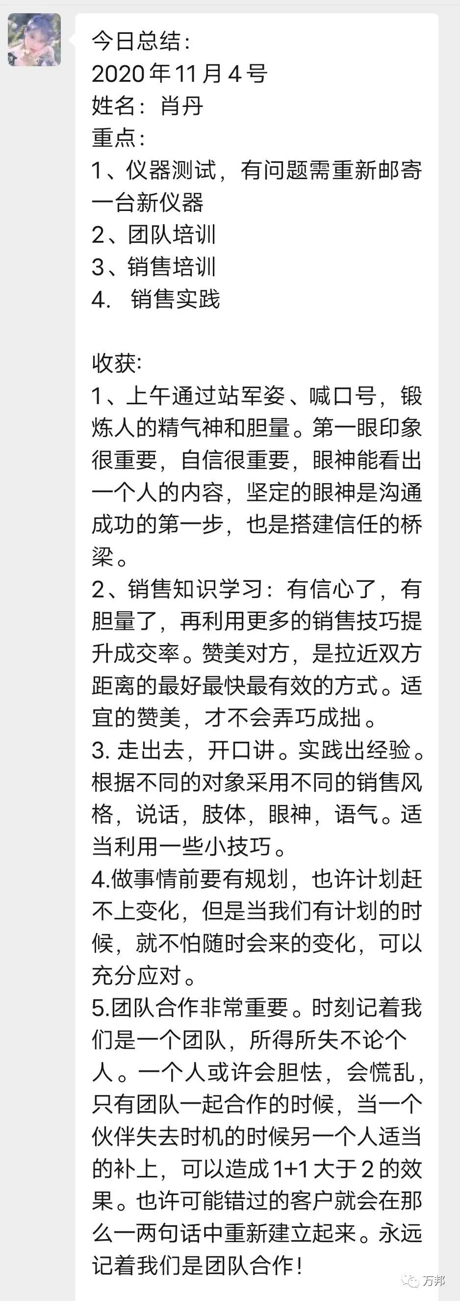 万邦集团铁嘴李辉老师给学员分享了销售技巧知识、与客户交流时的仪容仪表、谈吐坐姿,还包括如何保持成功的心态、以及目标规划等等,满满的干货,对学员来说都是很实用的知识,李辉老师把自己多年积累的经验全都传授给学员们,幽默风趣的风格不仅给学员们带来了欢乐,更让学员们在欢乐中获得更多的知识。看到学员们突破成长,心里也是由衷的高兴。学员们都表示很实用,收获颇深。