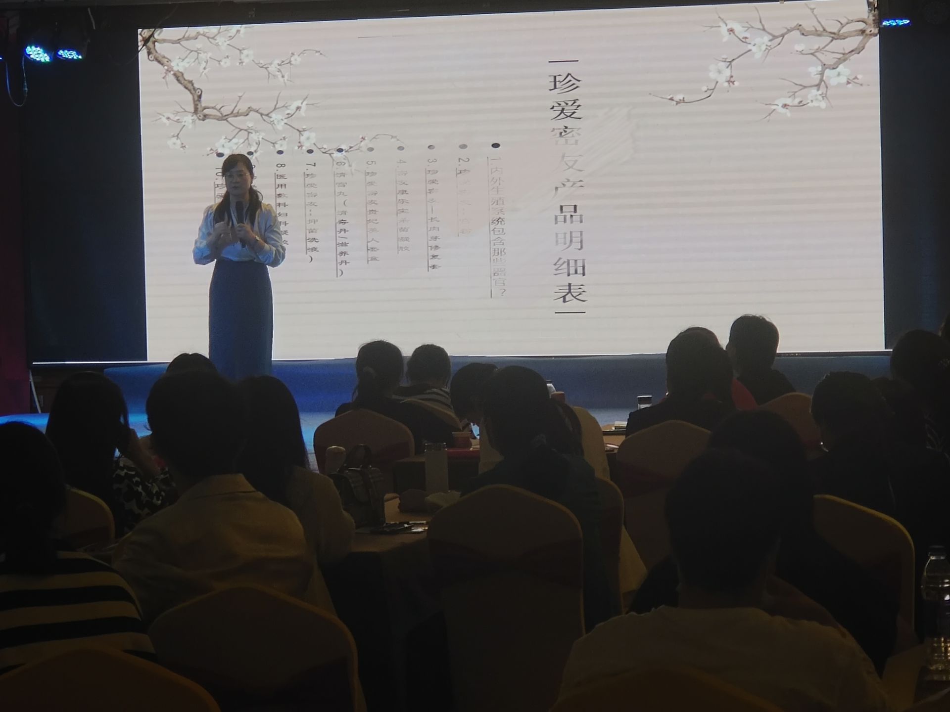 珍爱密友宫粉创始人沈琴老师上台分享手诊、面诊及私密的相关内容,通过手诊、面诊能透漏出身体隐藏的问题,吸引大家浓厚的兴趣。