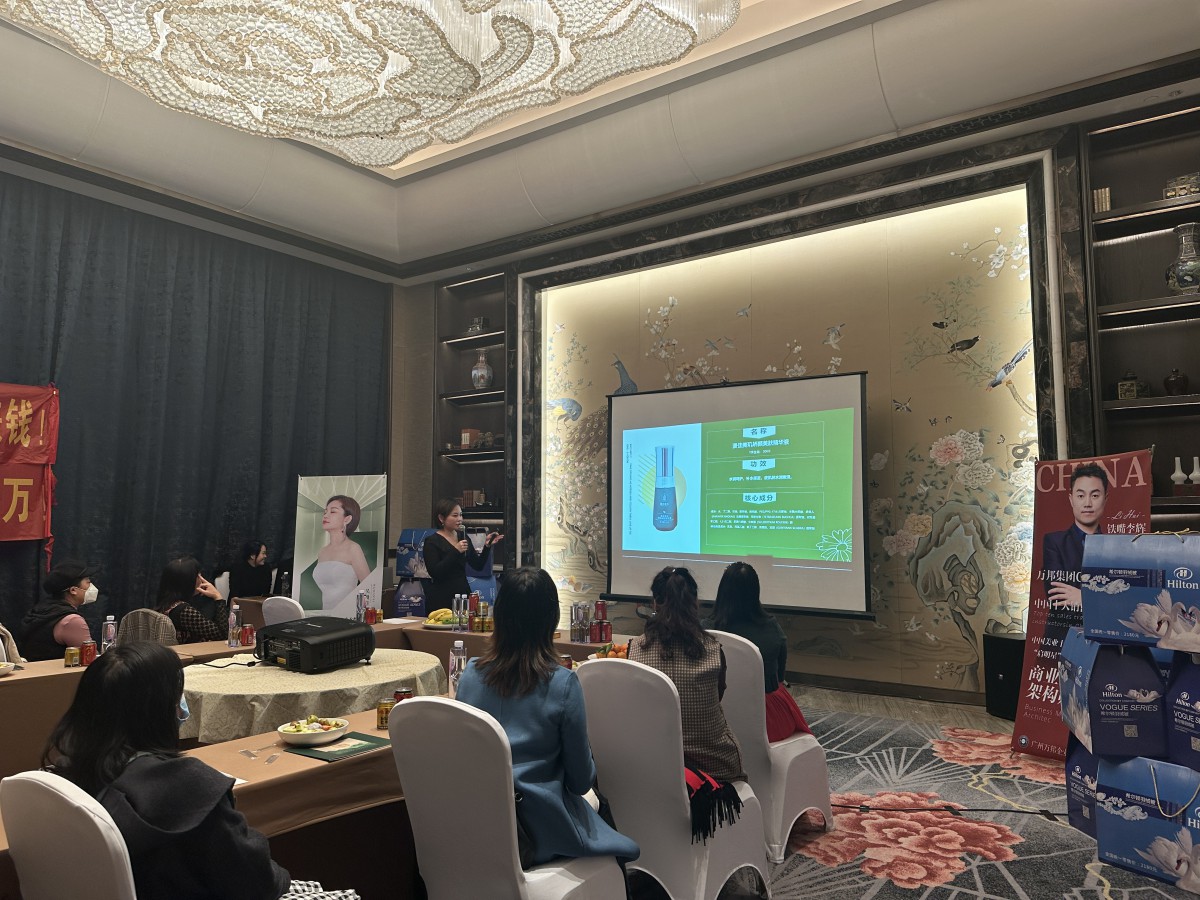 雅婷会所店长上台分享雅婷的相关介绍及产品项目,通过详细的讲解,大家对雅婷有了更大的信心,取得了大家信赖。这也展示了漫佳美玑的实力和未来发展趋势,赢得大家赞赏。