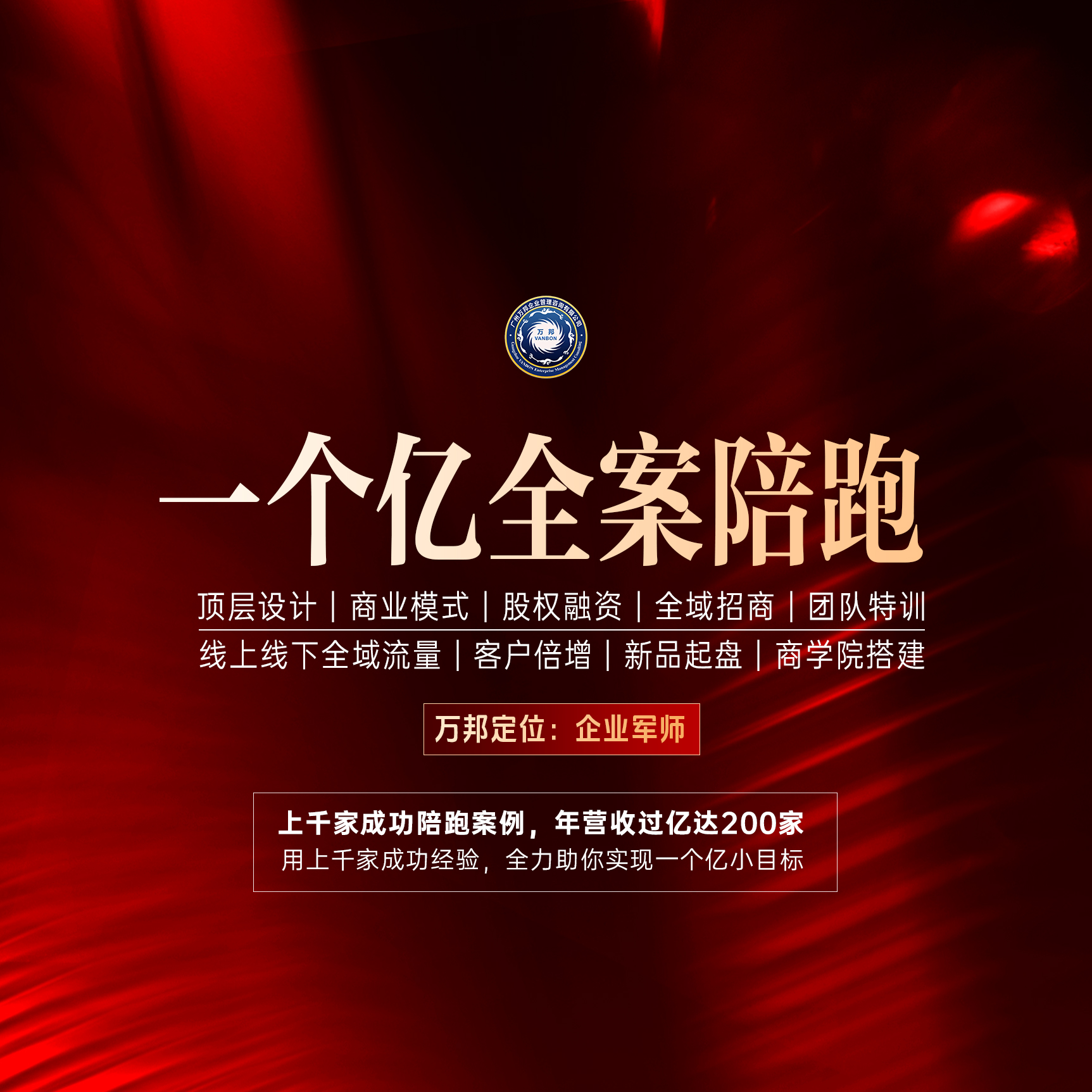 万邦集团成立于2003年6月,是专注于为中国中、小、微及创业者提供从公司定位、产品架构、公司架构,再到整个招商系统、自动化盈利系统、教育培训系统、团队打造、人才复制,为企业融资融人融资源的一系列孵化服务。